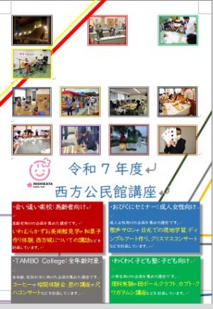 その他 | 西方公民館は、地域の生涯学習拠点として、各種学級・講座を開設し、地域のみなさまの学習や仲間づくりをお手伝いするとともに、地域の学習サークルや社会教育団体に活動の場を提供しています。 |