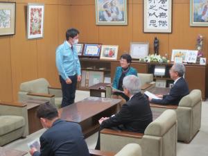 派遣業務に従事した職員について、市長、副市長より激励のお言葉を頂き、派遣後には業務報告を行いました。