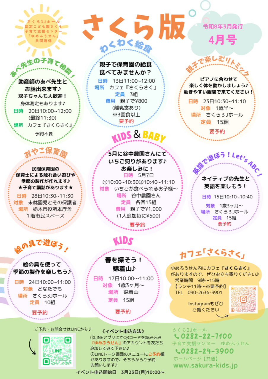 子育て支援センターゆめふうえん(認定こども園さくらホームページ内)<外部リンク>