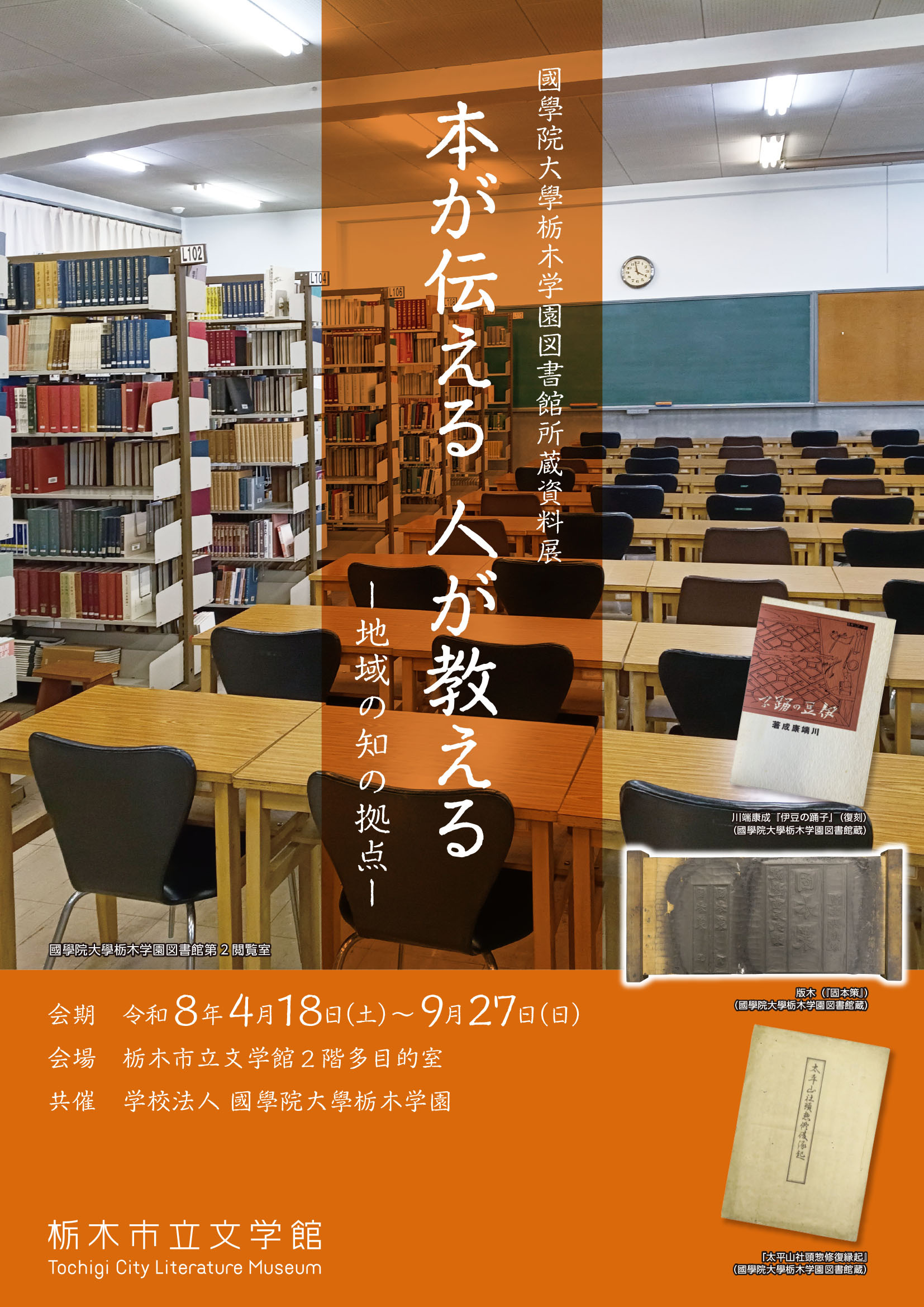 「國學院大學栃木学園図書館所蔵資料展 本が伝える 人が教える―地域の知の拠点―」チラシ(表面) [その他のファイル/702KB]