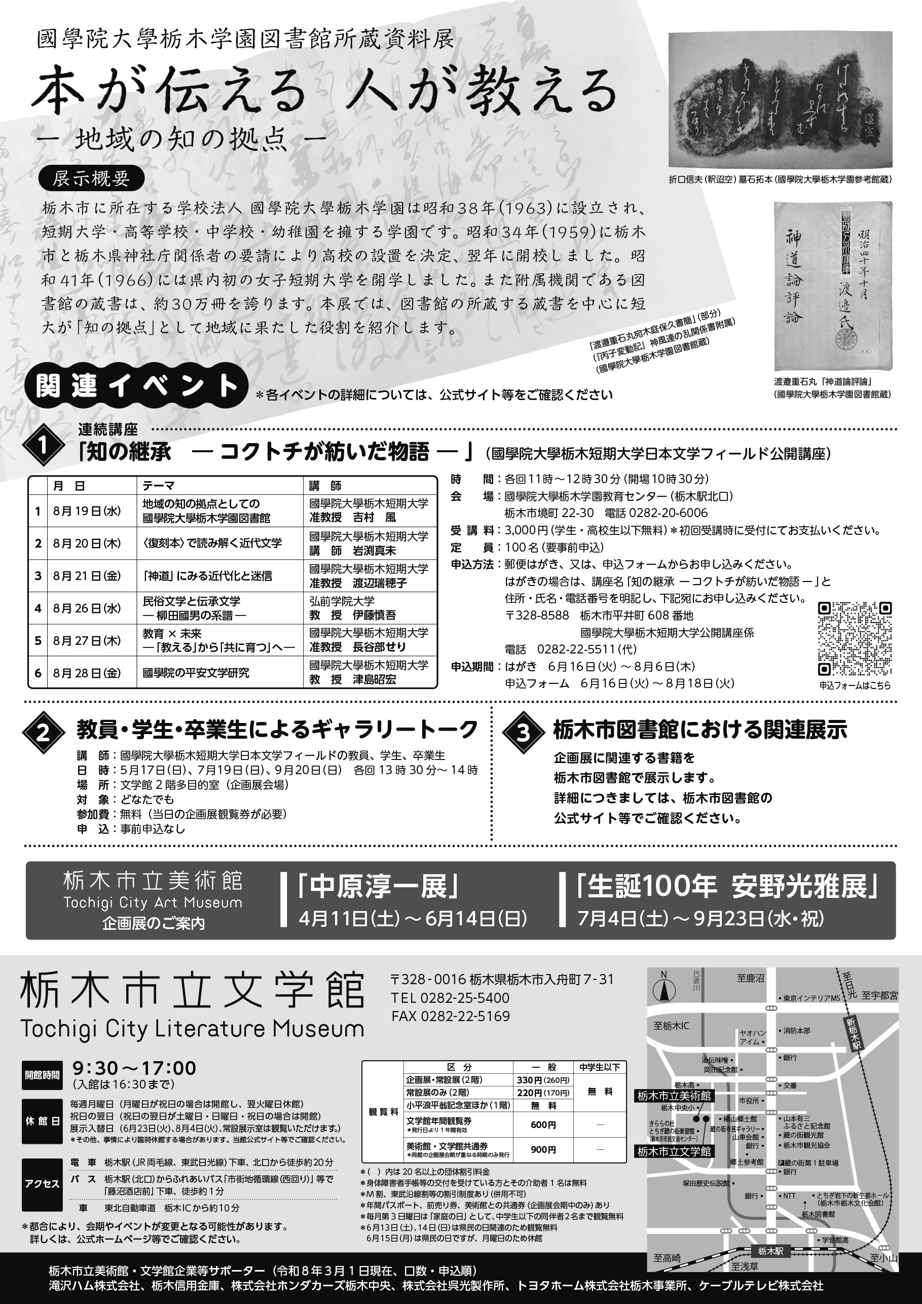 「國學院大學栃木学園図書館所蔵資料展 本が伝える 人が教える―地域の知の拠点―」チラシ(裏面) [その他のファイル/1.19MB]