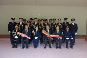 令和6年4月7日(日曜日)とちぎ岩下の新生姜ホール(栃木市栃木文化会館)を会場に、栃木市消防団入退団式及び研修会が開催され、令和5年度末に分団長以上で退職された方が消防団長より退団辞令を受領しました。