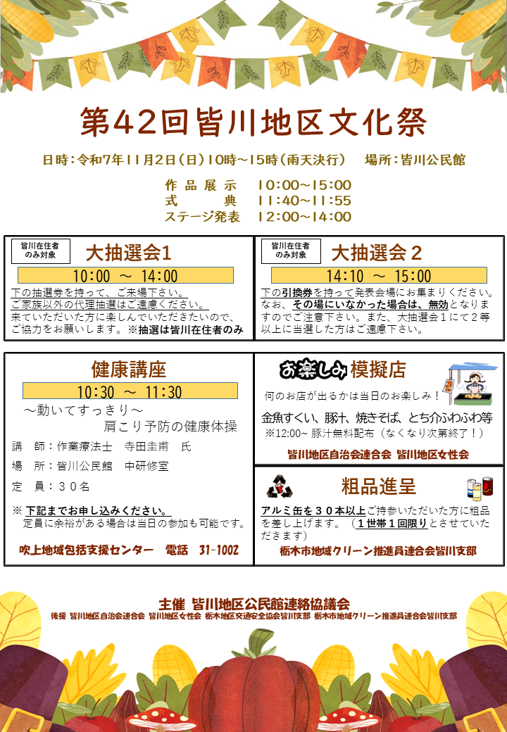 11/3は文化の日!だんだんと秋も深まるこの時期に、学生や地域の皆さんの個性豊かな作品を見て、健康講話を聴いて、教養を深めてみませんか🍂?